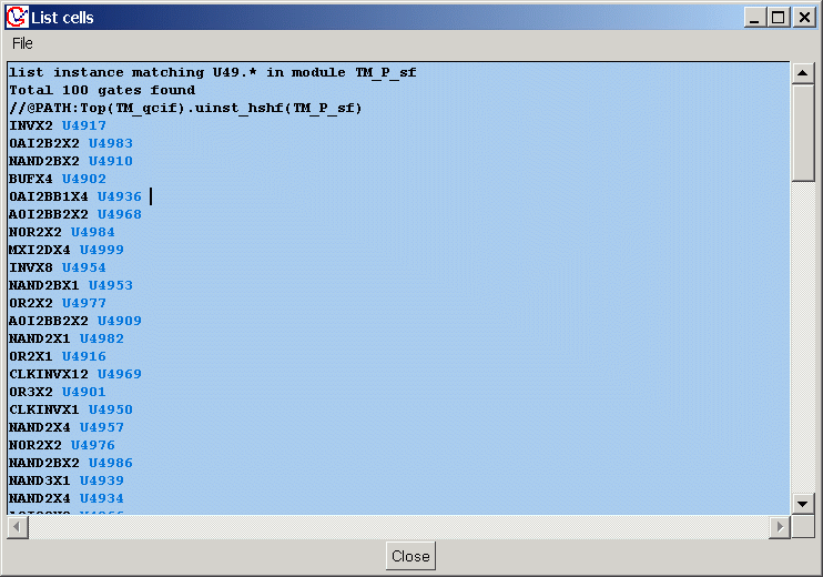 Type in the instance name. Path is separated by '.' or '/'. Wild card is acceptable. like 'U1234*'