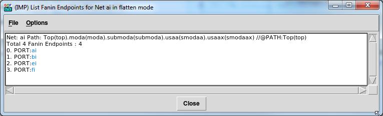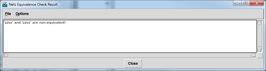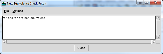 Once you have performed the individual nets equivalence check in GOF, a pop-up window will display the results. If the result indicates that the nets are not equivalent, you can continue investigating the fanin of the non-equivalent nets. On the other hand, if the result shows that the nets are equivalent, you can move on to checking other nets.