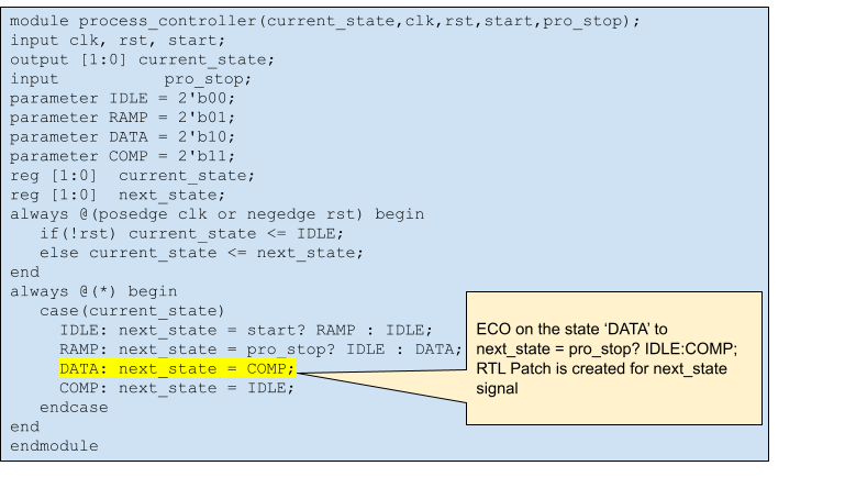 The RTL Patch on the state machine has the same name as the module under ECO, process_controller. The content is shown in Figure 3.