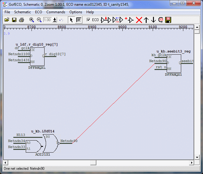 In GUI mode, GOF employs an incremental schematic engine (GofTrace), which is useful for identifying problematic logic. Once the problematic logic is isolated on the schematic, ECO mode can be activated, and ECO operations can be performed on the same schematic.