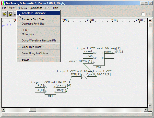 Use Menu GofTrace->Options->'Annotate Schematic' to enable the feature