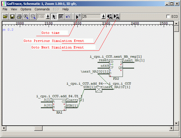 Click "Goto Previous" to goto the previous simulation event at which one or