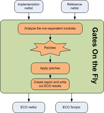 The internal Logic Equivalent Check engine finds and analyzes the non-equivalent modules and figures out the minimum logic patches to fix the Implementation netlist.