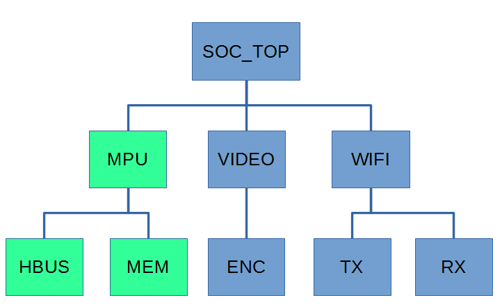 If design is large and ECO run time becomes too long, there is potentially a way to improve the speed. For a design shown in the following chart, if RTL changes are known to be contained inside module 'MPU' and its sub-modules, 'HBUS' and 'MEM', the top level can be set on 'MPU' and 'fix_design' can run much faster.