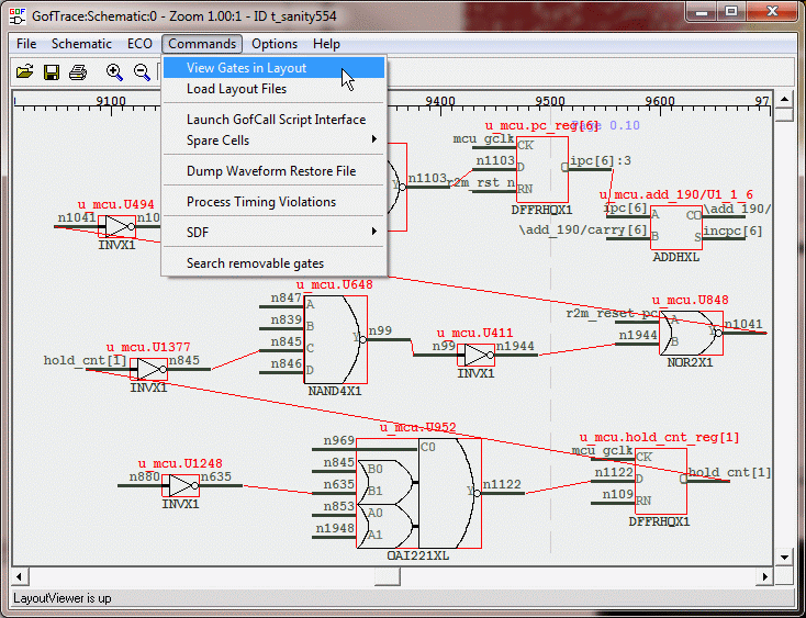 - Use Menu GofTrace->Commands->'View Gates in Layout' to launch LayoutViewer window