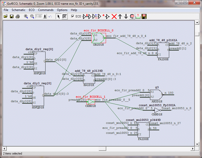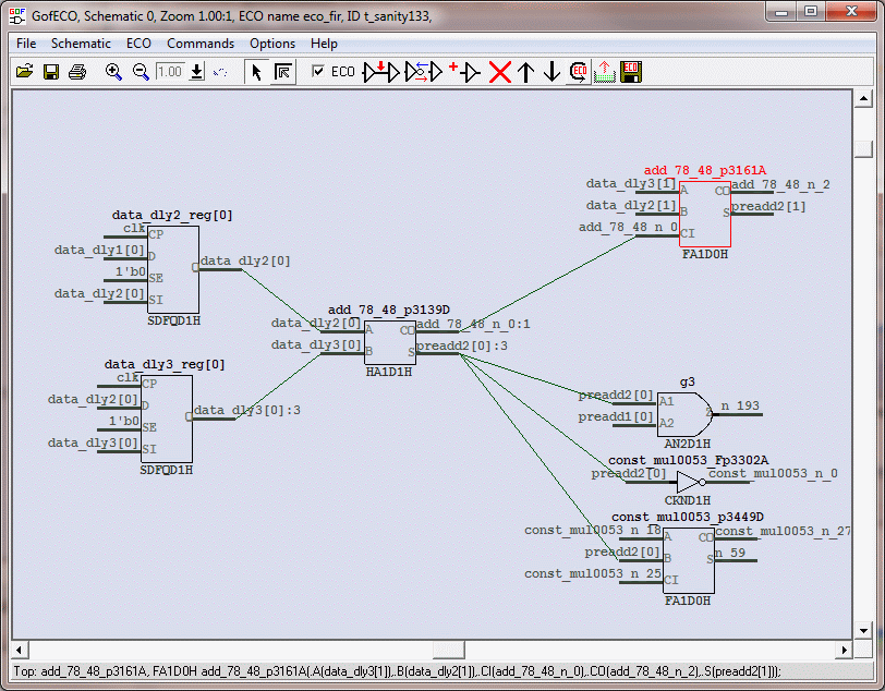 read_library("art.90nm.lib"); # Read in standard library read_design("-ref", "ref_fir.v"); # Read in the Reference Netlist read_design("-imp", "imp_fir.v"); # Read in the implementation Netlist Which is under ECO start_gui; # Enable GUI window