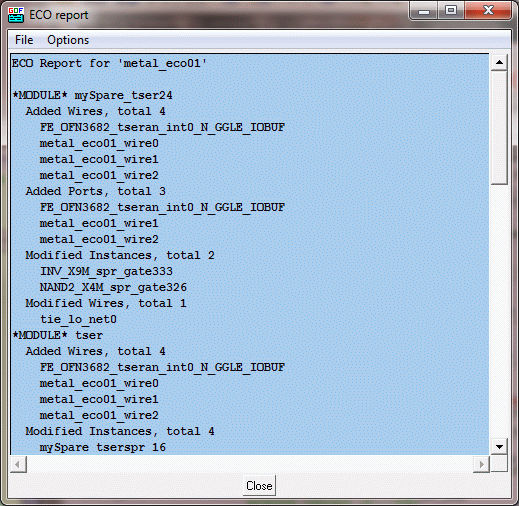 Save the ECO in verilog mode, 'tser_eco.v'